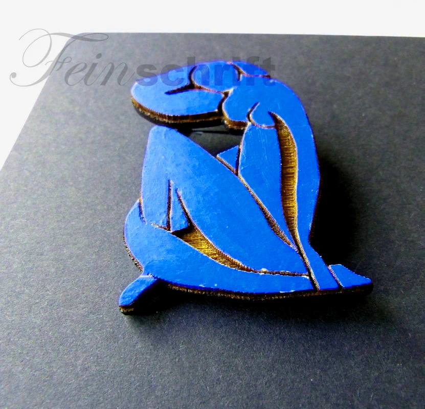 Blaue Frau, sitzend, KB, 60x45mm, Nadel