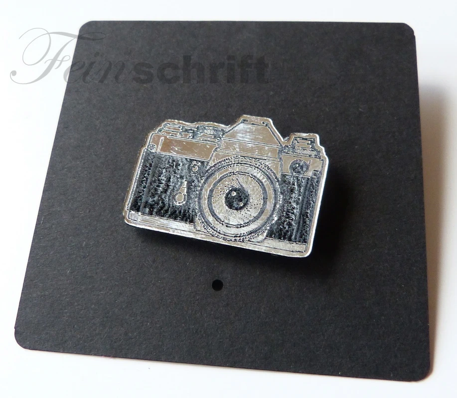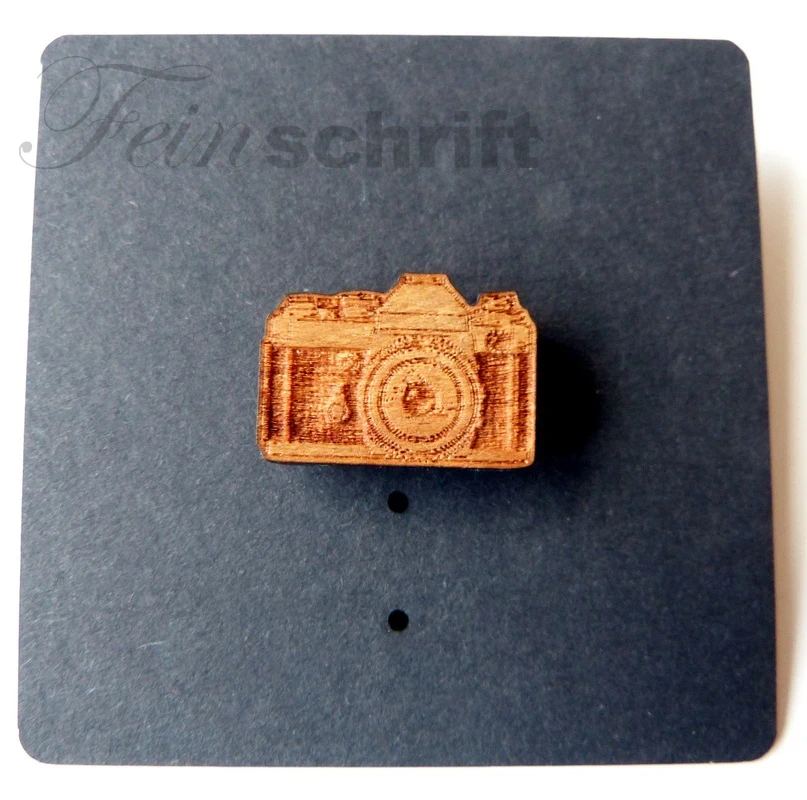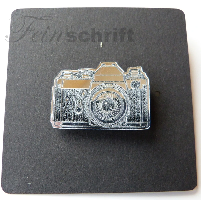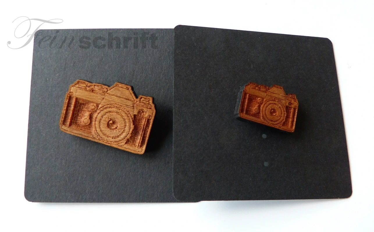 Brosche aus Kirschbaumholz oder Spiegelkunststoff