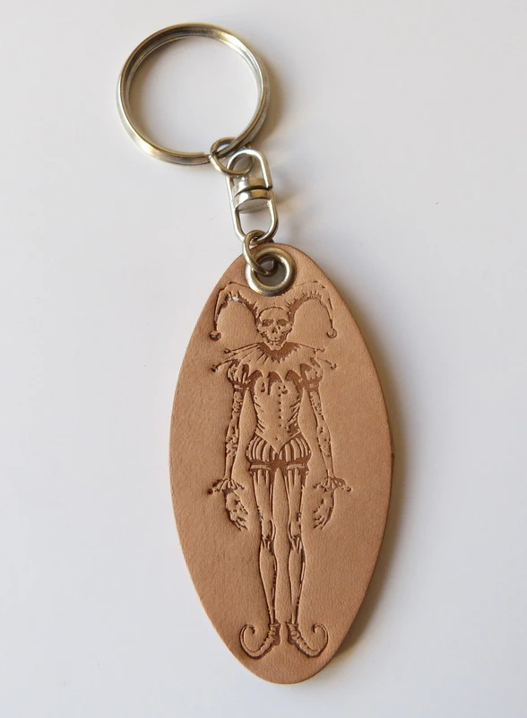 Lederplatte ca.7x4cm mit geprägtem MotivFärbung: naturhochwertiger Schlüsselring mit Kette und Wirbel