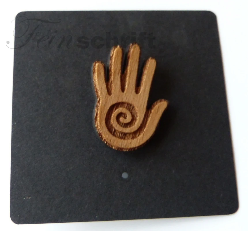 Brosche aus Kirschbaumholz oder Spiegelkunststoff