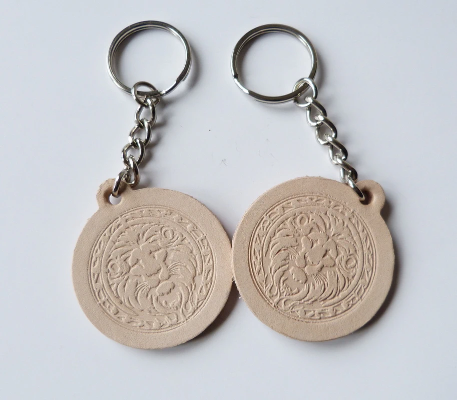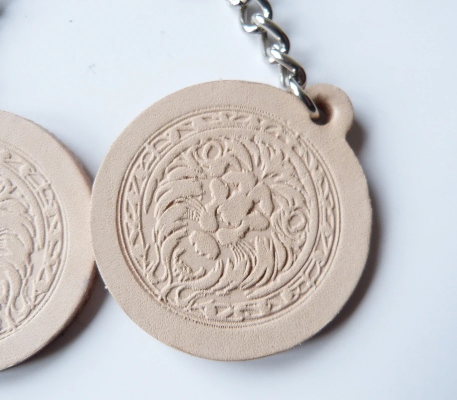 Lederplatte 5cm Durchmesser mit geprägtem MotivFärbung: keine , naturSchlüsselring