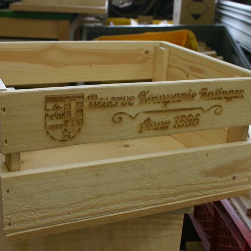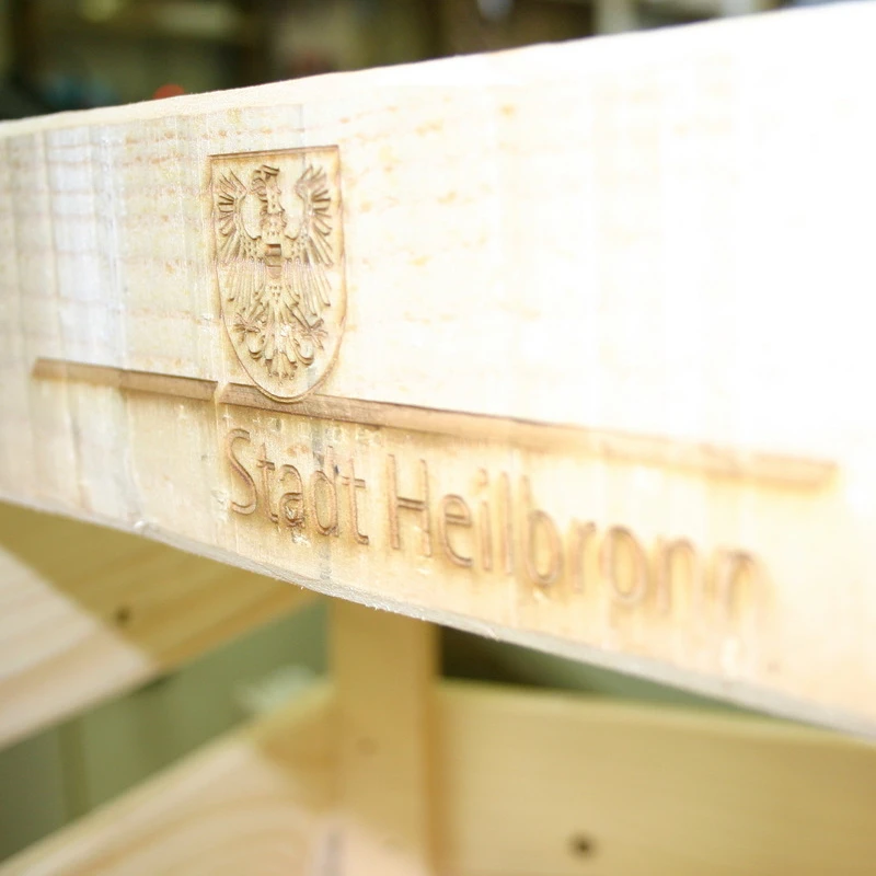 Hier kommt zuallererst Holz als Grundmaterial zum Einsatz.Branding kann auch durch Brandeisen, Brandmalgeräte oder Chemikalien durchgeführt werden.Am Detailreichsten und schnellsten ist jedoch das Brennen mittels Laserstrahl.