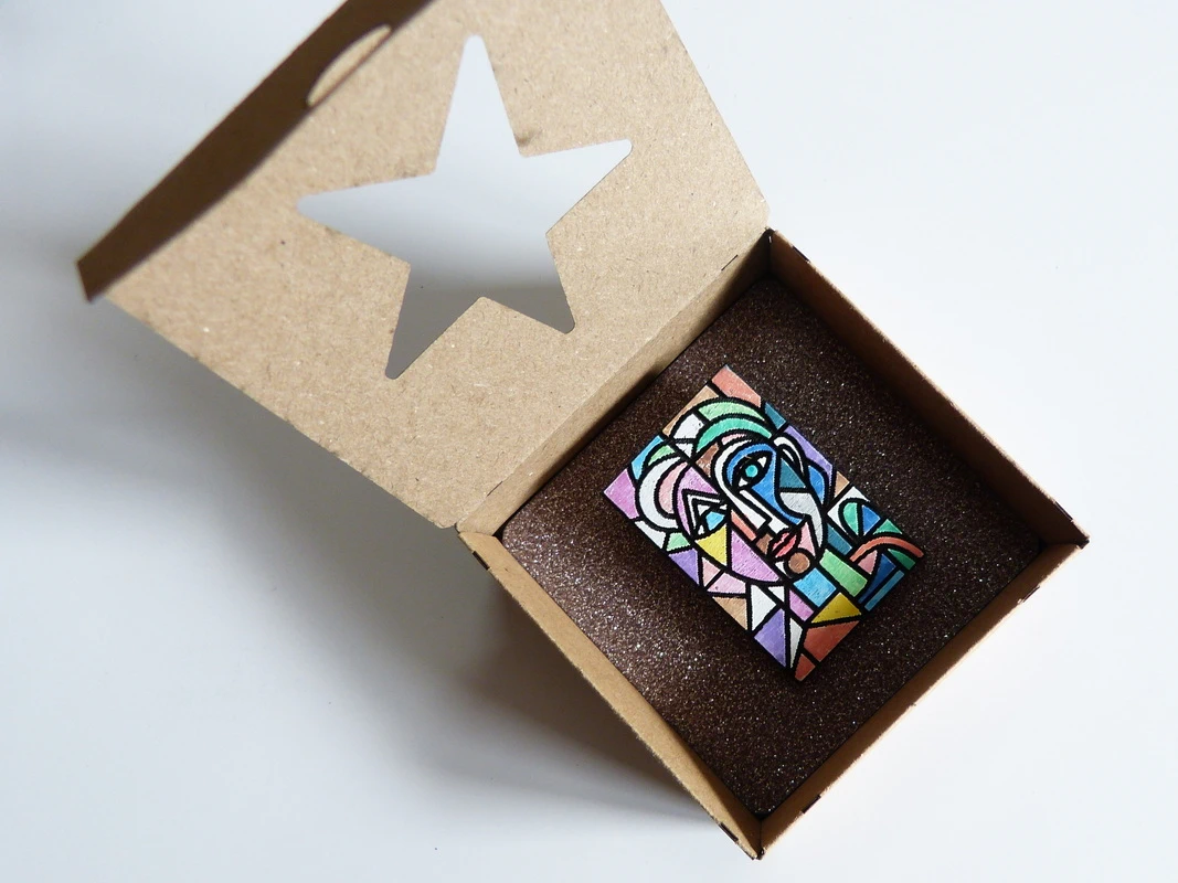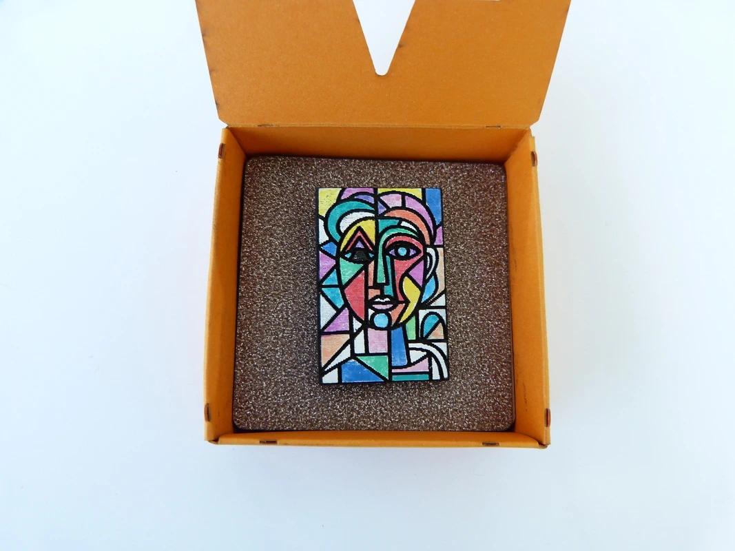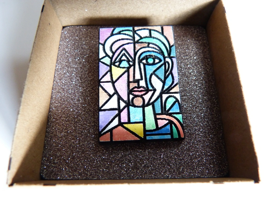 Brosche aus Holz inspiriert von Pablo Picasso