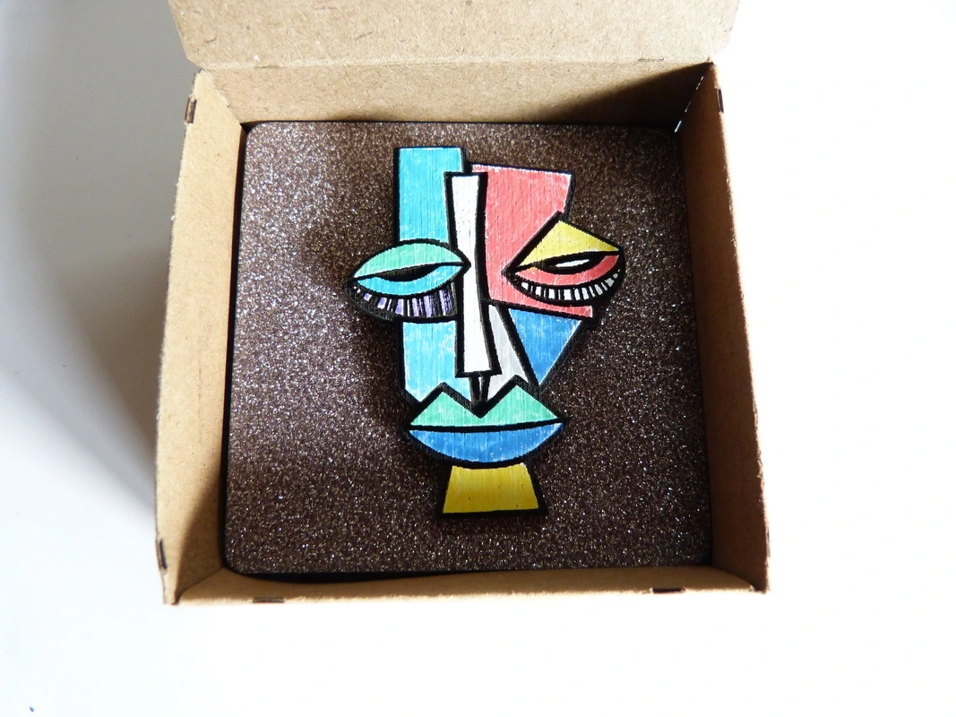 Brosche aus Holz inspiriert von Pablo Picasso