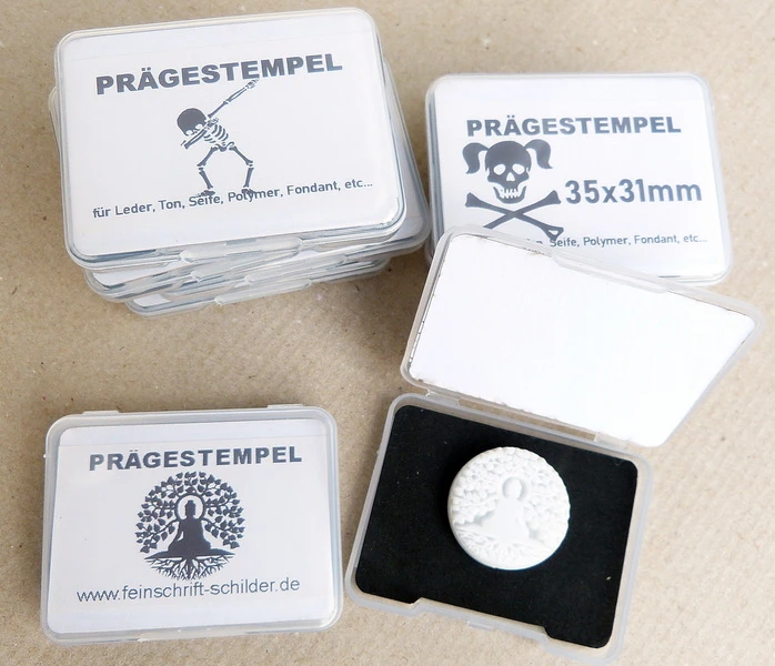 Warum Delrin? Delrin ist ein technisch hochwertiger Kunststoff mit hoher Formstabilität, ideal für saubere und detailreiche Prägungen – ohne sich bei Druck zu verformen. Perfekt geeignet für den Einsatz mit Gummihammer, Werkstattpresse, Zwingen – ohne Hitze!