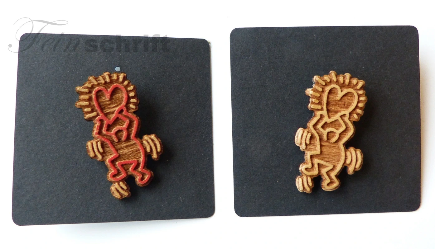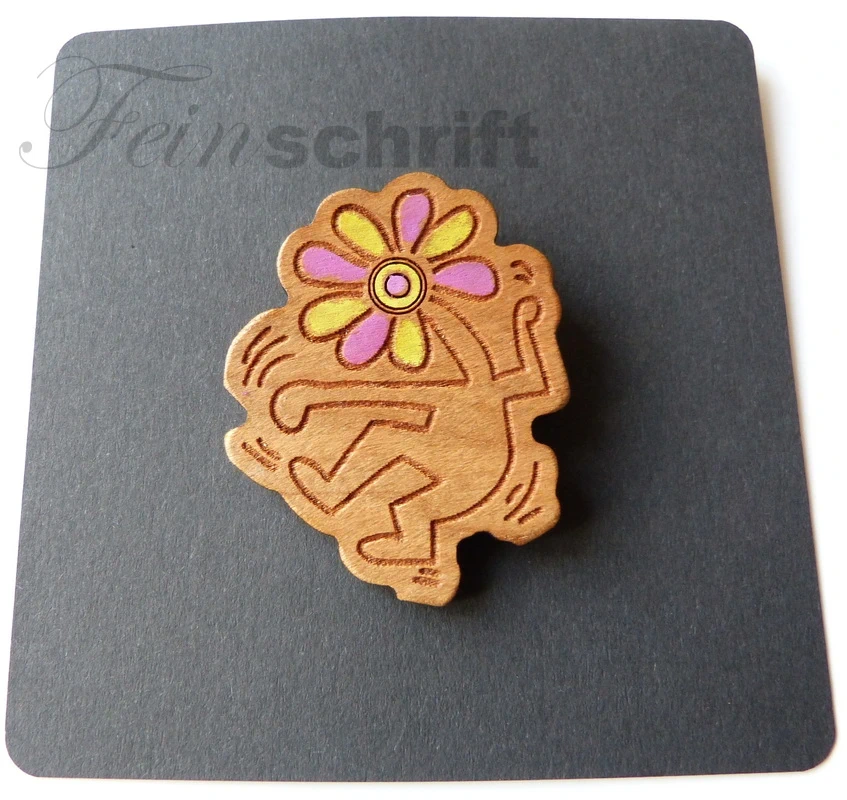 Anfertigung aus Holz mit Nadel oder Pin auf der Rückseite