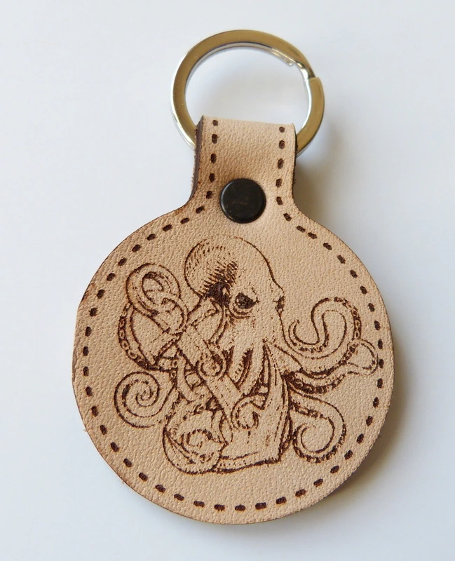 Lederplatte 5cm Durchmesser mit garviertem MotivFärbung: keine , naturSchlüsselring