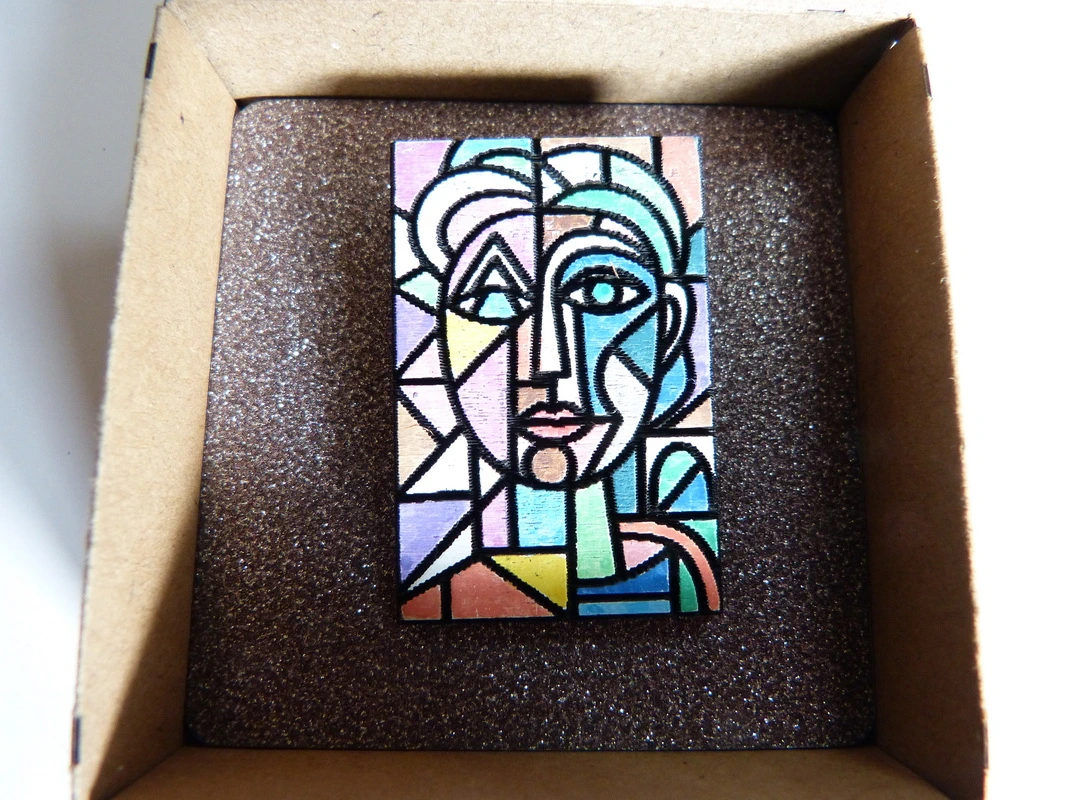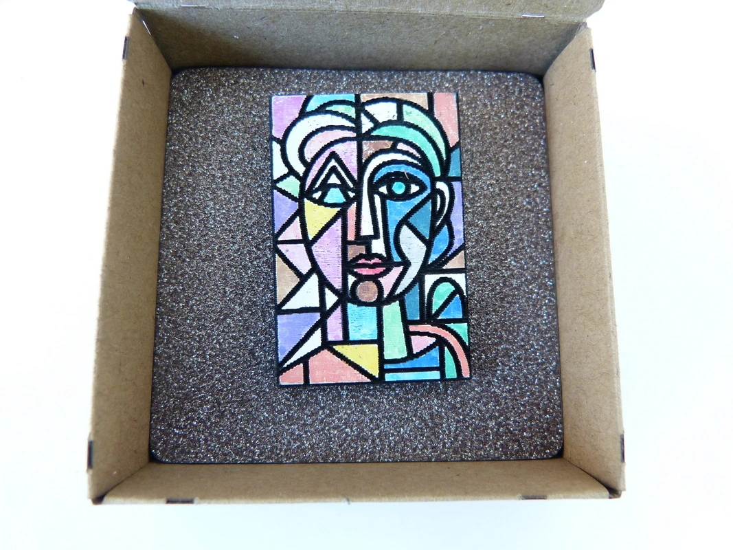 Brosche aus Holz inspiriert von Pablo Picasso
